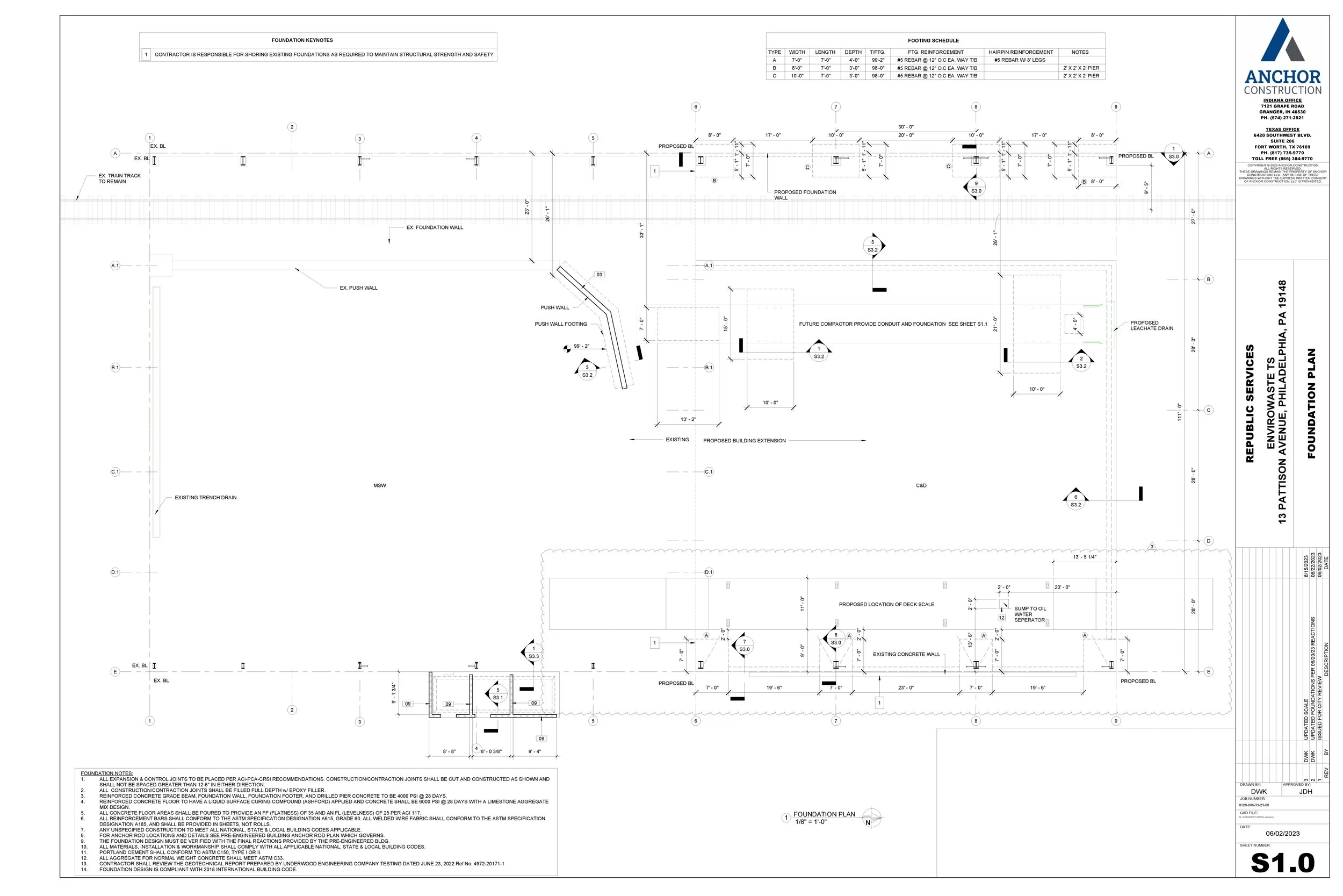 This project included the demolition of the existing electrical room, pump room, and restroom, and the replacement of the lights, existing metal panels, and paving around the addition. One of the challenges of this project was trying to fit the proposed columns and footers next to the existing railroad track. By working with the civil engineer, the solution was to have the footer eccentrically loaded.