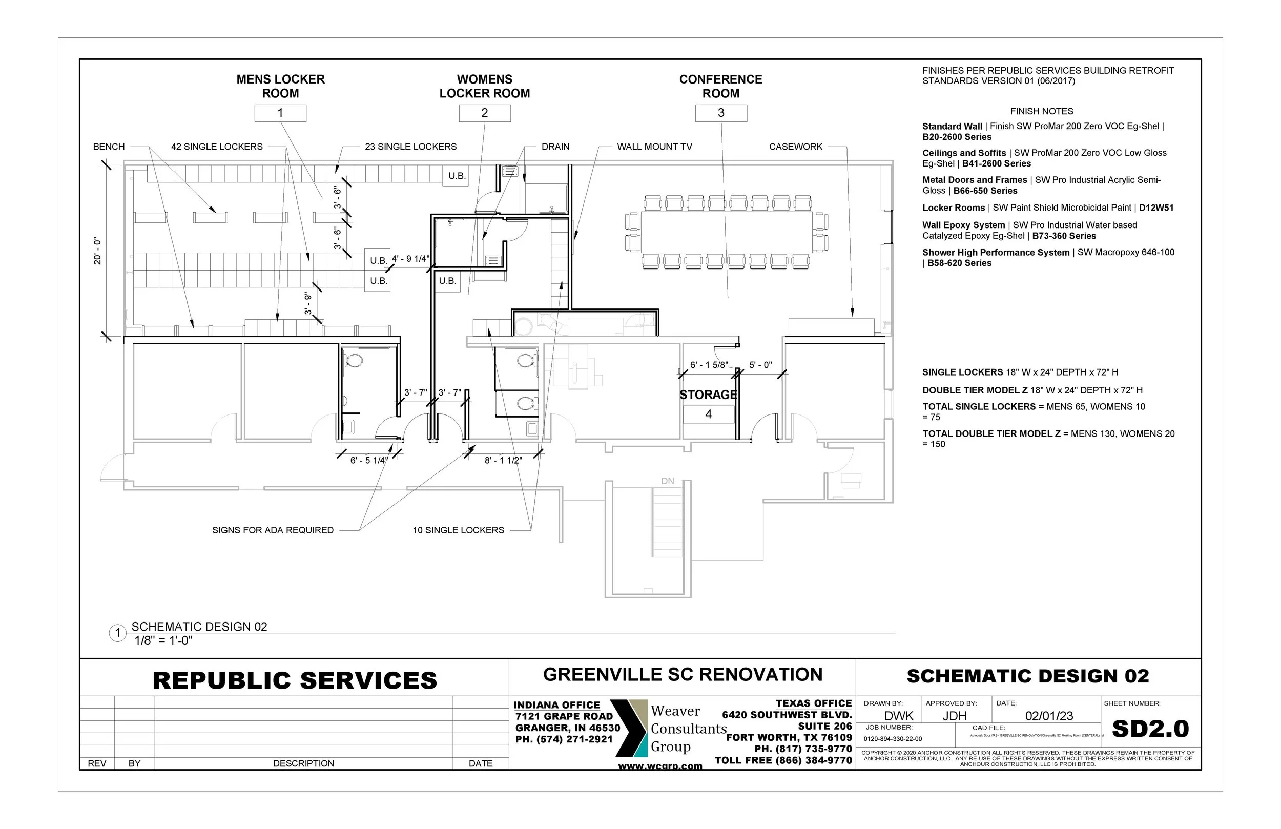 The client’s initial desire was to remodel part of the second floor and add a 20-person conference room, women’s and men’s lockers, and restrooms. Later on, the client requested the addition of a laundry chute for ease of maintenance, the demolition of the existing second-floor mechanical room, and the addition of RTUs. The final plan considers the spatial importance of the size of each room and how they relate to each other in the existing space.